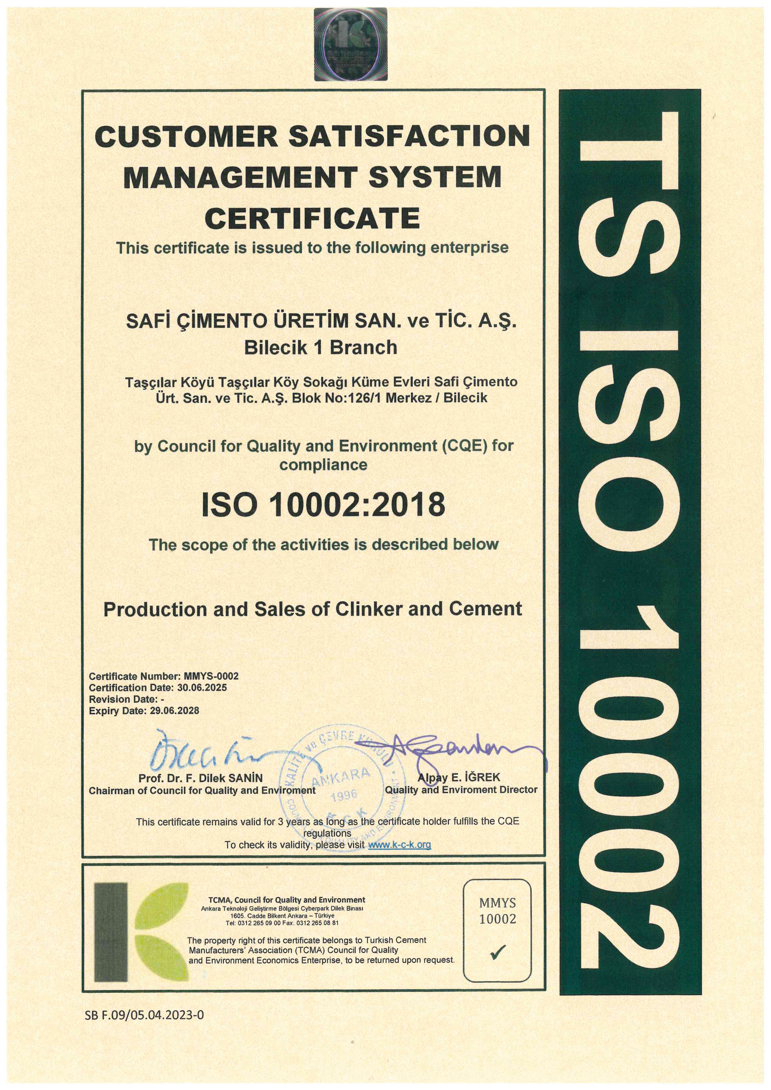 10002 CSM System Certificate - TS EN ISO 10002:2018