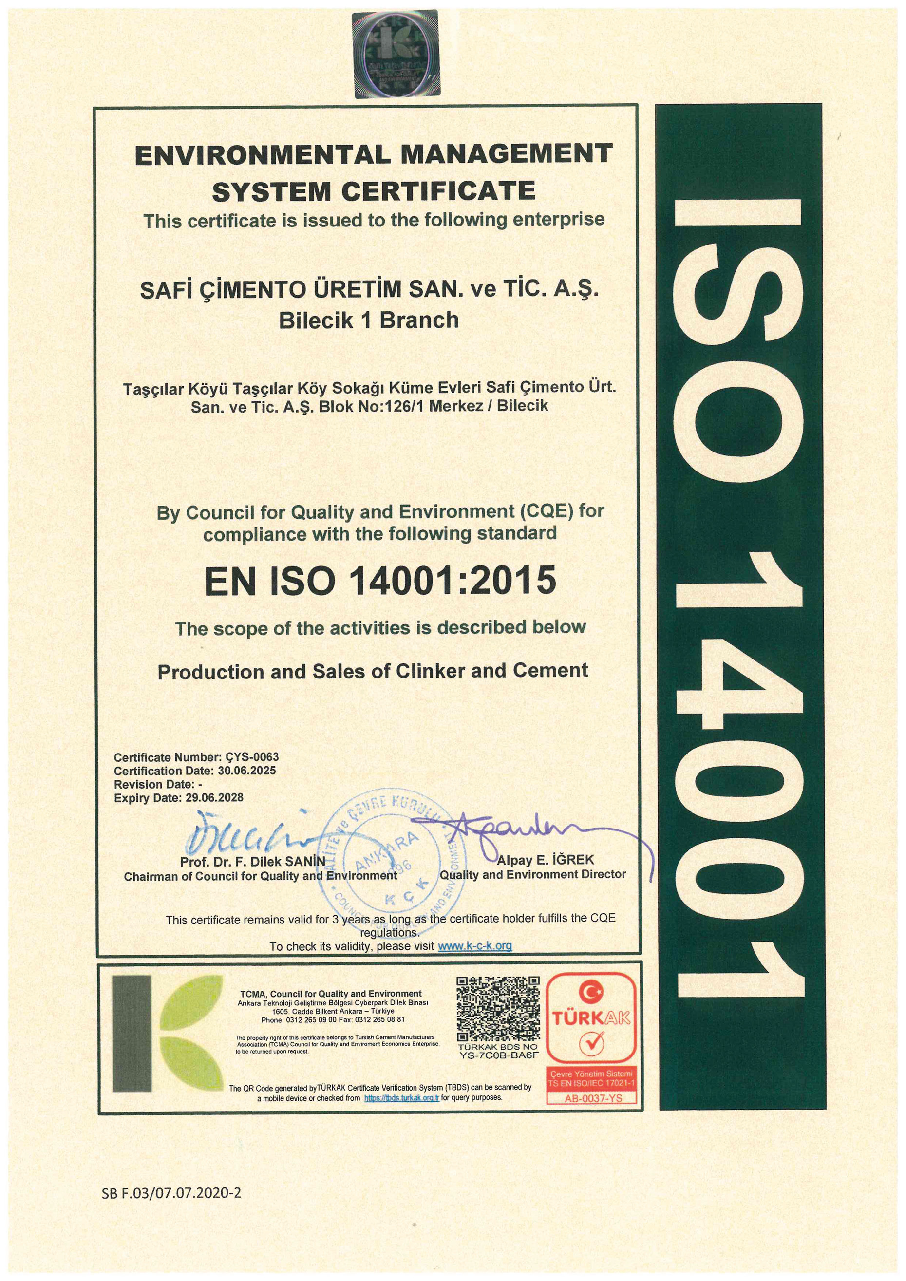 14001 Environmental Management System Certificate - TS EN ISO 14001:2015