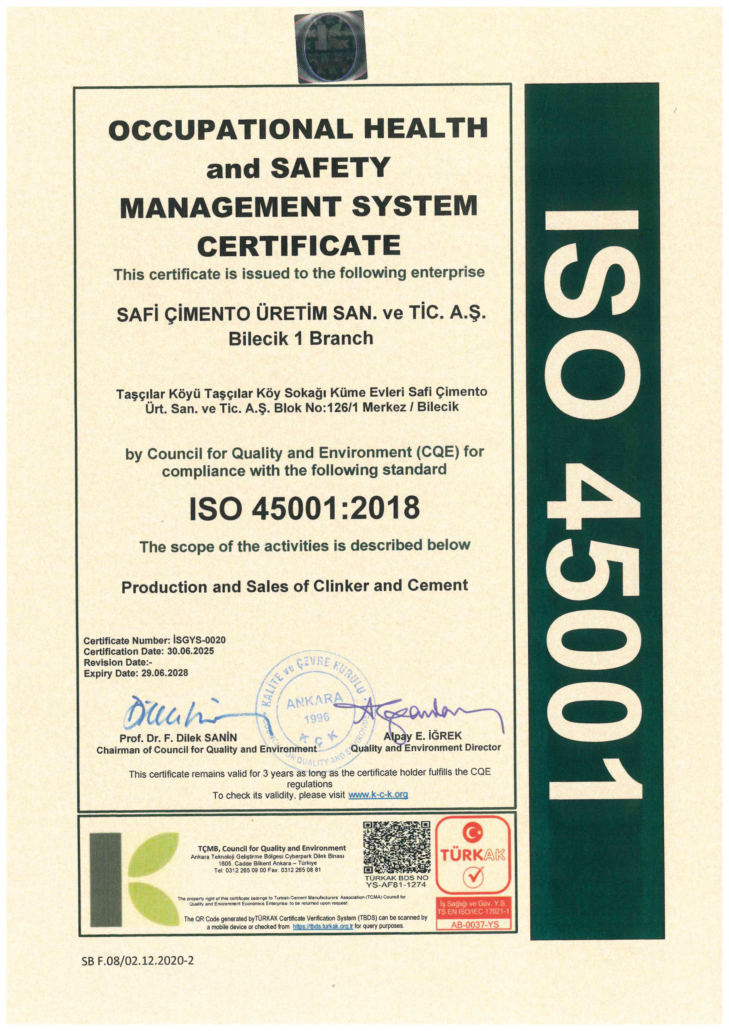 45001 OHS Management System Certificate - TS EN ISO 45001:2018