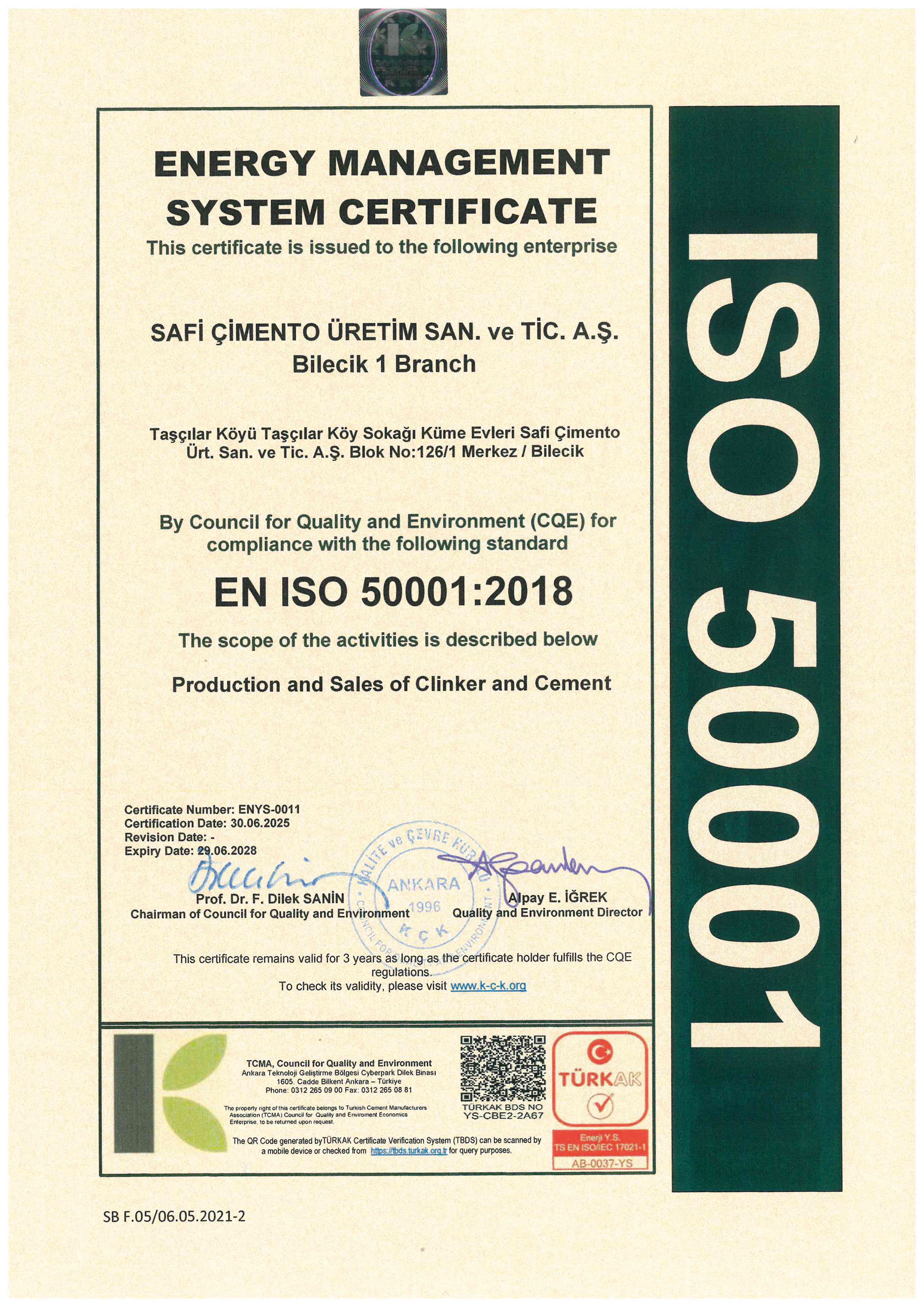 50001 Energy Management System Certificate - TS EN ISO 50001:2018